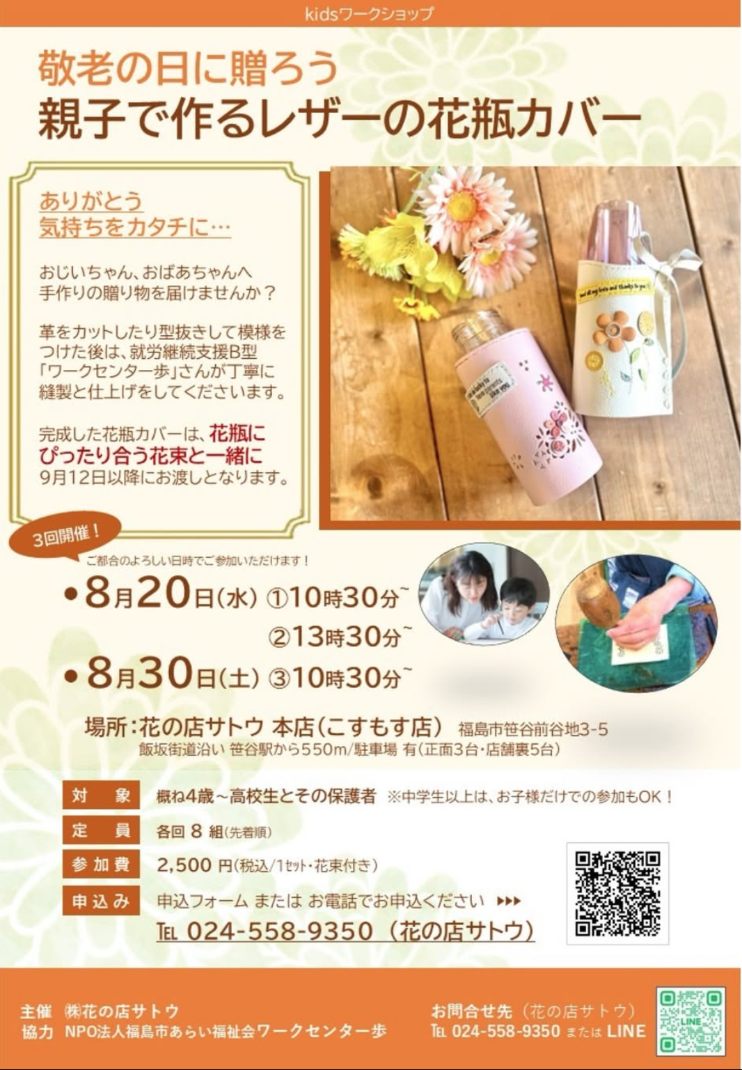 「NPO法人ワークセンター歩」は、 福島県福島市荒井にある 就労継続支援B型の工房です。 革製品・木工品を制作・販売しています。 革製品 木工品 出店情報 歩[あゆみ]公式 Instagram > お知らせ {"blogs":[{"sid":"LXmjtyceA-","categories":"","tags":"","order":"newer","name":"お知らせ","pathToFolder":"./cn1/","topfile":"top.html","rss":"0"}],"articleType":"0","limit_article_num":"","article_disp_offset":"0","article_disp_offset_num":"","article_new_offset":"0","article_new_offset_num":""} [%article_date_notime_dot%] [%new:New%] [%title%] [%lead%] 続きを読む お知らせ一覧へ >